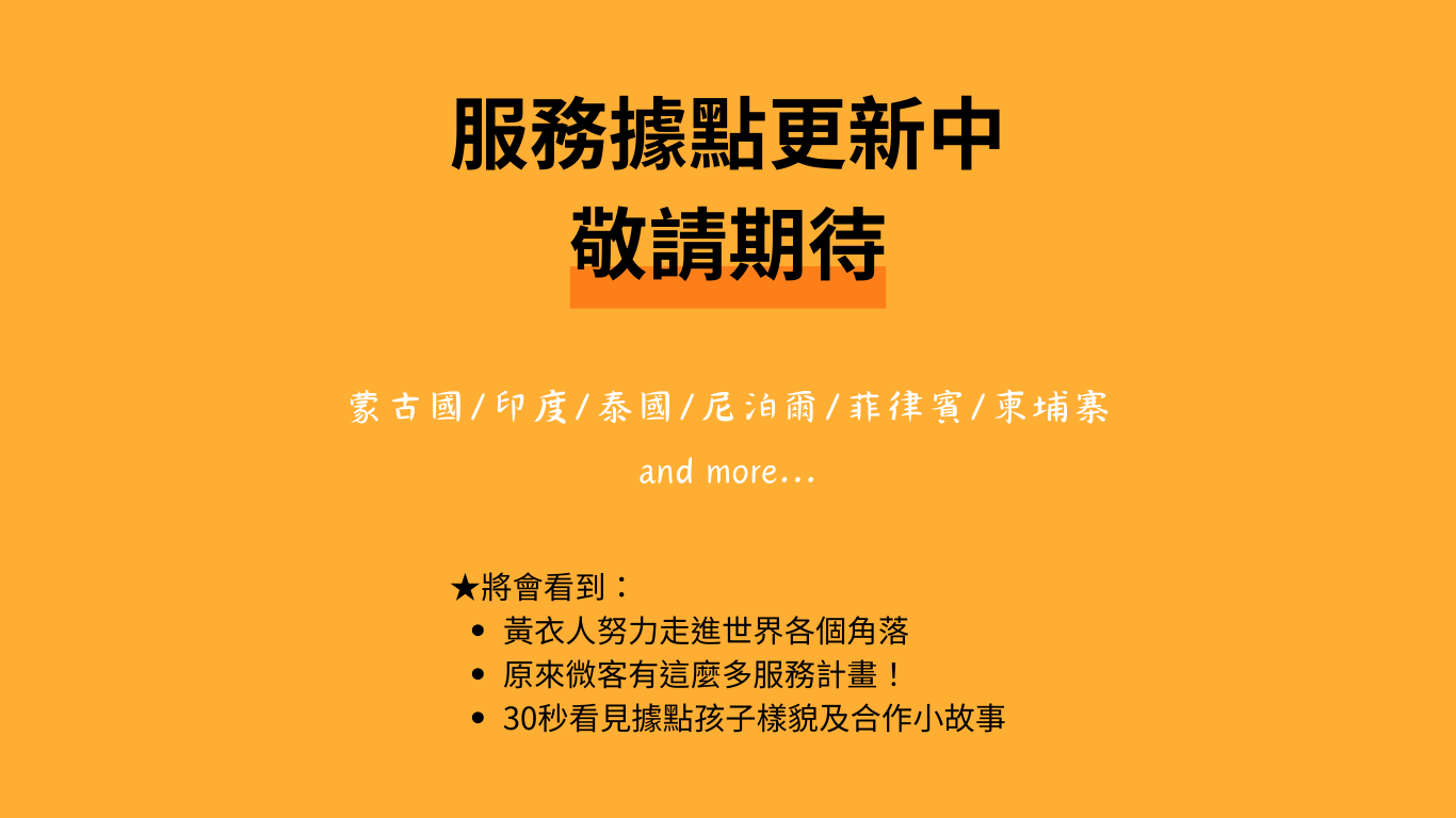 微客創立之初,因看見第三世界地區弱勢兒少在陪伴教育的匱乏,便開始專注於全球不同的弱勢兒少議題,並以區域(國家)結合議題為主軸,提供人道關懷服務。...
