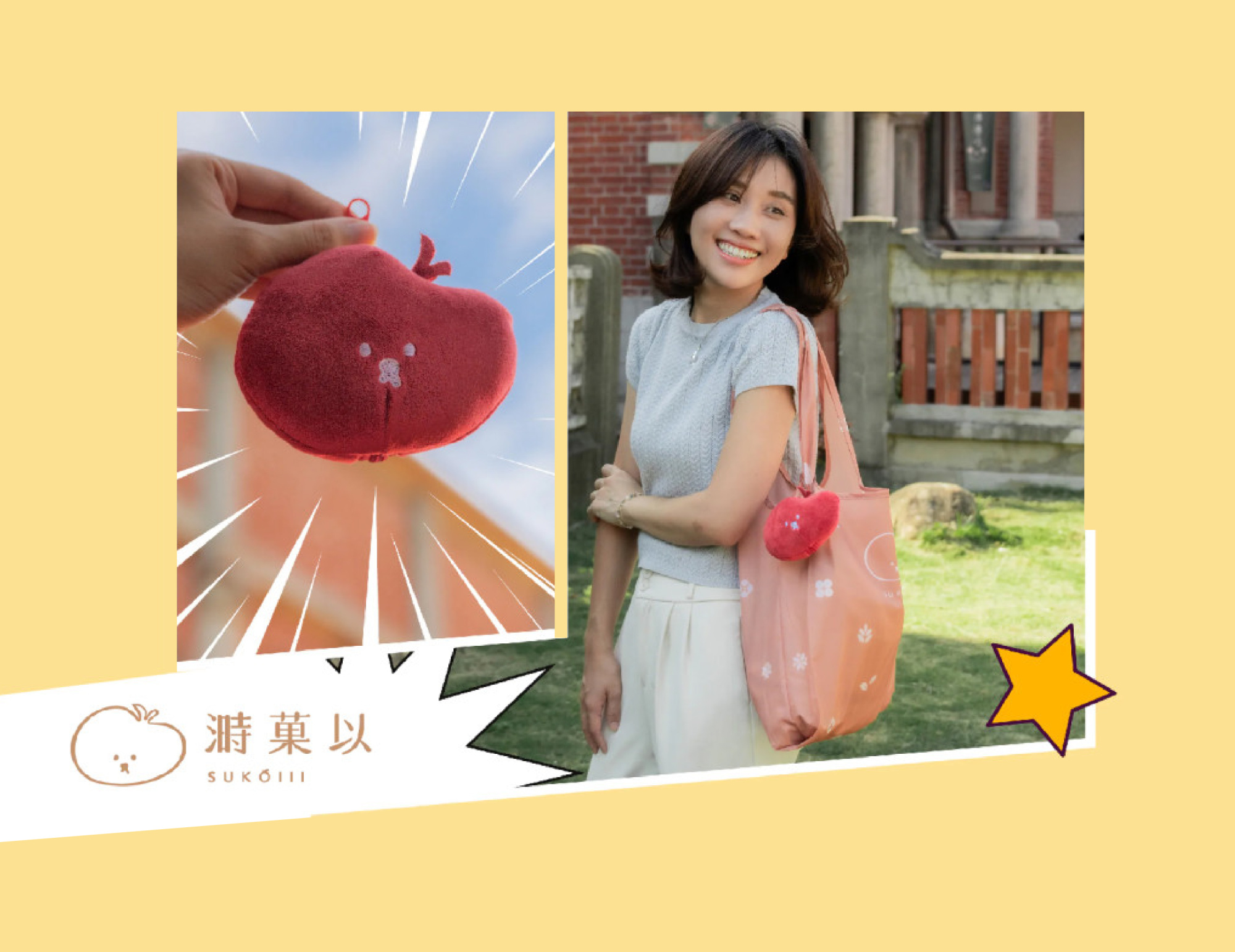 即可獲得 溡菓以 SUKOIII 小蘋狗造型 購物袋 + 抱枕 各乙個