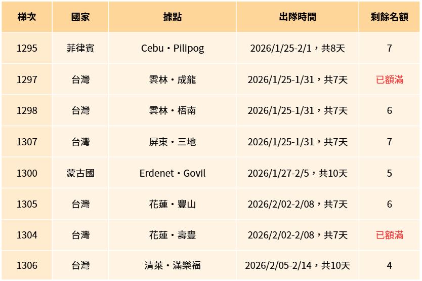 每一次的國際服務,都是一次次深刻的價值實踐,在這裡,你親手為遠方資源匱乏的孩童與社區帶來永續且真實的改變,從陪伴到理解,你的努力將凝聚成孩子未來希望的基石。