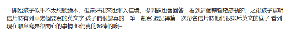 (圖3:在城市裡同樣年紀的孩子已能自行閱讀英文繪本,而服務據點的孩子因為不熟悉英文而感到抗拒。志工觀察孩子們經過整個學期的數位學伴,從對英文沒有興趣到一筆一劃認真寫,體現陪伴的價值和意義。)